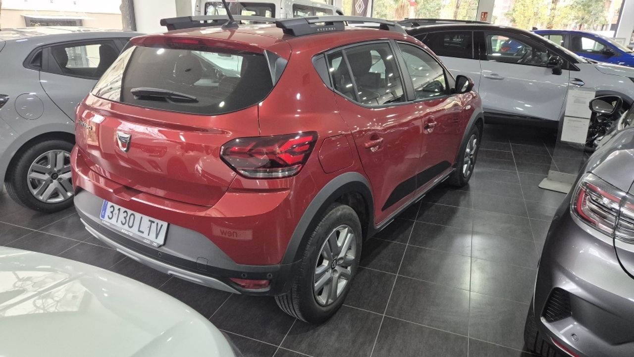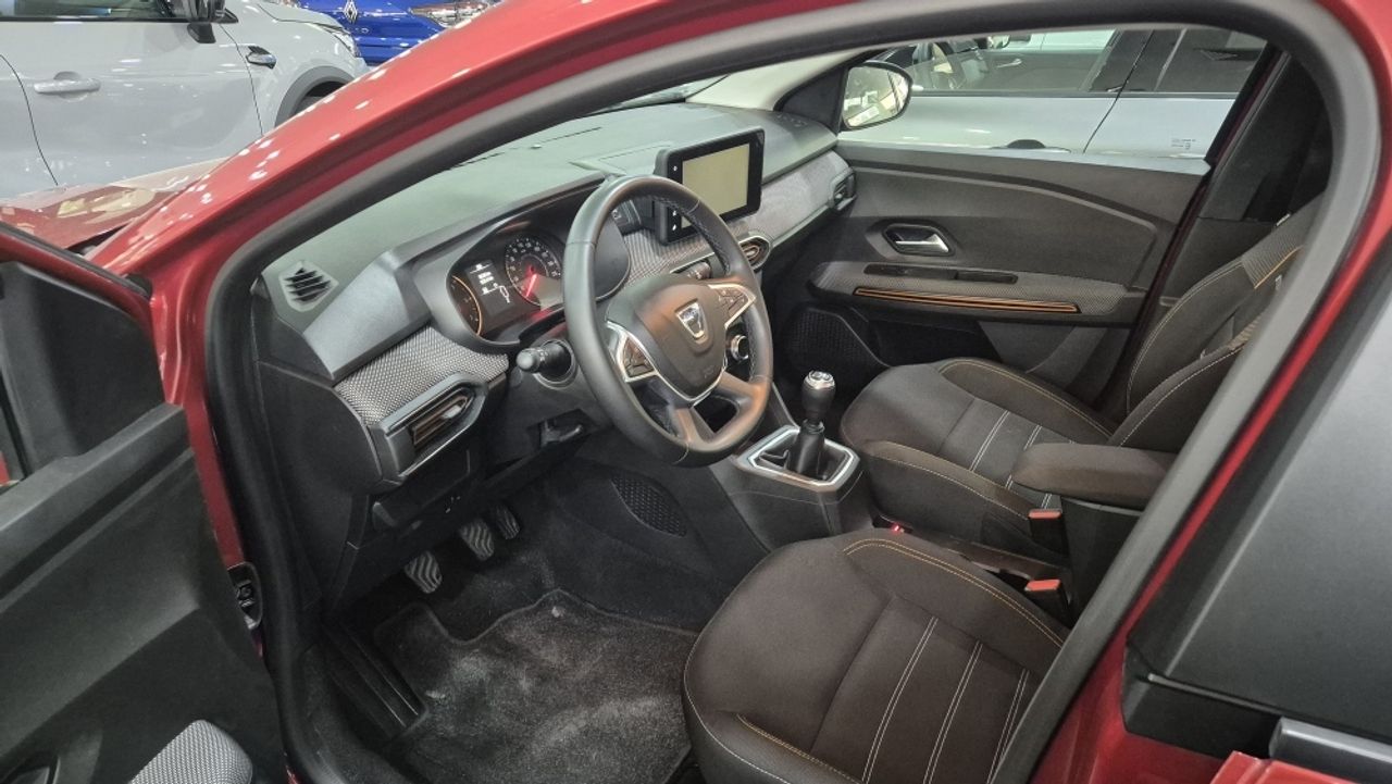 REF: 3130 ¡Bienvenidos a ACAUTO y ADAUTO! Distribuidor Oficial Renault y Dacia - Coches en stock listos para entrega inmediata. - Garantía mínima de 12 meses (¡y hasta 7 años con Dacia Zen!). - Tasamos tu coche al momento, sin compromiso ni líos. - Cambio de nombre incluido, porque nos gusta hacerte la vida fácil. Financia con Mobilize Financial Services y aprovecha descuentos de 500€ a 1000€ (importe mínimo: 6.000€). Horario de ventas: De lunes a viernes, mañanas de 09:30 a 14:00 y tardes de 15:30 a 20:00. Nos esforzamos al máximo para que la información de los equipamientos sea correcta, aunque no podemos descartar algún pequeño error. ¿Tienes dudas? Estamos aquí para resolverlas sin compromiso. ¡Te esperamos para ayudarte a encontrar el coche perfecto para ti! ***EQUIPAMIENTO EXTRA*** - Paquete de seguridad - Pintura metalizada - Climatizador automático - Elevalunas eléctric. detrás - Rueda de repuesto ***EQUIPAMIENTO SERIE*** - Carrocería: 5 puertas - Retrovisor exterior regulable eléctricamente y calefactable - Retrovisor exterior color carrocería - Barras portaequipajes en el techo con Larguero del techo modular - Faro Eco-LED - Luces antiniebla - Luz de día LED - Limpiaparabrisas con Sensor de lluvia - Paragolpes color carrocería - Receptor de radio digital (DAB+) - Mando distancia para la radio el Volante - Soporte del teléfono y Conexión USB - Asistente a la conducción: sistema de seguridad con automático Aviso de socorro (ERA GLONASS / eCall) - pantalla táctil en color (8,0 Pulgada) - Ordenador de a bordo - Indicador de las marchas - Sistema audio-navegador con pantalla táctil en color (Media Nav) - Ayuda aparcamiento detrás - Sistema control presión neumáticos - Control de crucero (Tempomat) - Sistema limitador de velocidad - Airbag lado del conductor - Airbag acompañante - Sistema de airbag para la cabeza lateral - Airbag lateral delante - Reposabrazos central delante - Aire acondicionado - Asiento delante izquierda regulable en altura - Asiento trasero (2ª fila) dividido, plegable (1/3-2/3) - Reposacabezas detrás regulable mecánicam. (3 Pieza) - Elevalunas eléctric. delante - Elevalunas eléctric. con Transmisor de impulsos izquierda delante - Cierre centralizado con Mando a distancia - Cierre centralizado con Mando a distancia (Suplemento para Desbloqueo del portón trasero) - Agarraderos de la puerta ext. color carrocería - Anclajes Isofix para Asiento para niños en Asiento trasero - Sistema antibloqueo (ABS) - Asistente a la conducción: Freno de emergencia - Volante (efecto-cuero) - Columna de dirección (Volante) regulable en altura - Columna de dirección (Volante) regulable en longitud - Dirección asistida eléctric. - Programa electrónico de estabilidad (ESP) - Asistente a la conducción: Asistente de subidas (HSA) - Caja de cambios 6-marcha - Reducción polución según norma gases escape Euro 6d - Eco "Moda" (Conmutador del modo de conducción) - Sistema Start/Stop - Filtro partículas-Otto (GPF) (GPF) - Motor 1,0 Ltr. - 67 kW TCE CAT - Stepway