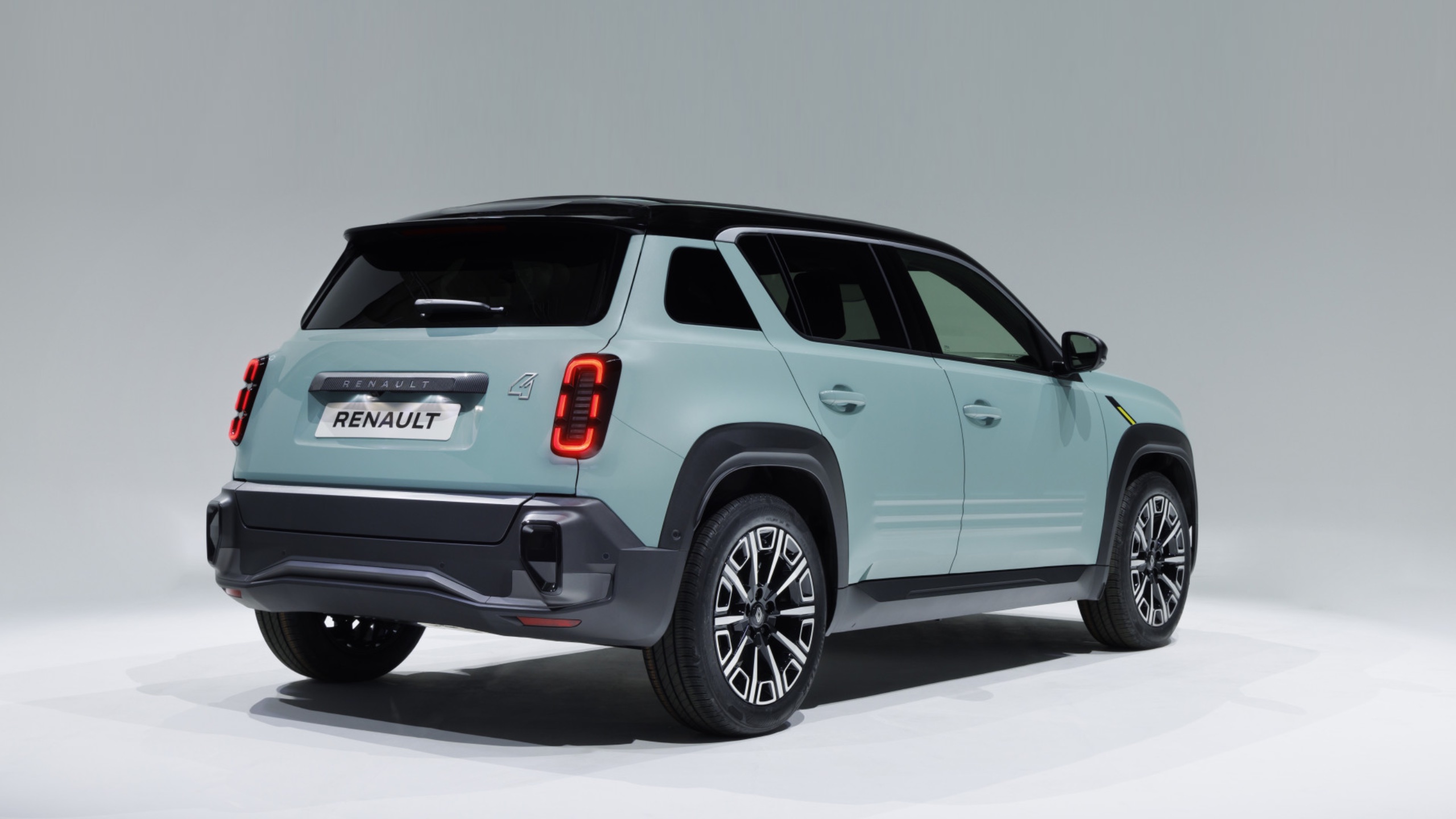 Los grupos ópticos traseros LED tripartitos, que enmarcan el portón identificado con el numeral 4, reinterpretan con elegancia contemporánea los elementos de la generación inaugural del Renault 4.
