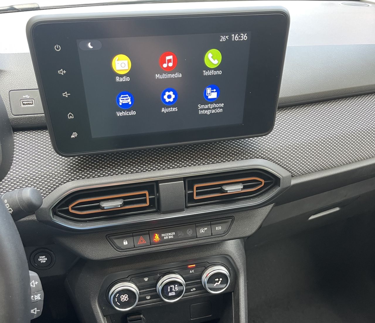 REF: 0607 "Días Únicos Renault y Dacia" ¡No te lo puedes perder! Del 18 al 24 de octubre: precios increíbles en vehículos nuevos y de ocasión. DESCUENTOS DE HASTA 1.500€ EN NUESTRA GAMA RENAULT SELECTION Ven y aprovecha esta promoción exclusiva. ¡Visítanos ahora mismo! . ACAUTO S.A. DISTRIBUIDOR OFICIAL RENAULT Y DACIA En stock con entrega inmediata. Garantía mínima 12 meses. Tasamos tu coche al momento y sin compromiso. Precio condicionado a financiación con RCI Banque**Oferta financiando con RCI Banque Sucursal en España, S.A. Oferta sujeta a financiación con descuentos desde los 600.-€ a 1500.-€ e Importe mínimo a financiar 8.000€. Horario ventas De L. a V. de 09:00 a 14:00 y de 15:30 a 20:00 Tfno.: 93 419 24 32 Los equipamientos relacionados son a título informativo y son correctos salvo errores. ***EQUIPAMIENTO EXTRA*** - Paquete de seguridad - Pintura metalizada - Pintura metalizada Gris-cometas - Separación del compartimento carga/maletero plegable - Climatizador automático - Elevalunas eléctric. detrás - Llantas de aleación 6,5x16 (Mahalia) - Rueda de repuesto ***EQUIPAMIENTO SERIE*** - Carrocería: 5 puertas - Retrovisor exterior regulable eléctricamente y calefactable - Retrovisor exterior color carrocería - Barras portaequipajes en el techo con Larguero del techo modular - Faro Eco-LED - Luces antiniebla - Luz de día LED - Limpiaparabrisas con Sensor de lluvia - Parachoques color carrocería - Receptor de radio digital (DAB+) - Mando distancia para la radio el Volante - Soporte del teléfono y Conexión USB - Asistente a la conducción: sistema de seguridad con automático Aviso de socorro (ERA GLONASS / eCall) - pantalla táctil en color (8,0 Pulgada) - Ordenador de a bordo - Indicador de las marchas - Sistema audio-navegador con pantalla táctil en color (Media Nav) - Ayuda aparcamiento detrás - Sistema control presión neumáticos - Control de crucero (Tempomat) - Sistema limitador de velocidad - Airbag lado del conductor - Airbag acompañante - Sistema de airbag para la cabeza lateral - Airbag lateral delante - Reposabrazos central delante - Aire acondicionado - Asiento delante izquierda regulable en altura - Asiento trasero (2ª fila) dividido, plegable (1/3-2/3) - Reposacabezas detrás regulable mecánicam. (3 Pieza) - Elevalunas eléctric. delante - Elevalunas eléctric. con Transmisor de impulsos izquierda delante - Cierre centralizado con Mando a distancia - Cierre centralizado con Mando a distancia (Suplemento para Desbloqueo del portón trasero) - Agarraderos de la puerta ext. color carrocería - Anclajes Isofix para Asiento para niños en Asiento trasero - Sistema antibloqueo (ABS) - Asistente a la conducción: Freno de emergencia - Volante (efecto-cuero) - Columna de dirección (Volante) regulable en altura - Columna de dirección (Volante) regulable en longitud - Dirección asistida eléctric. - Programa electrónico de estabilidad (ESP) - Asistente a la conducción: Asistente de subidas (HSA) - Caja de cambios 6-marcha - Reducción polución según norma gases escape Euro 6d - Eco "Moda" (Conmutador del modo de conducción) - Sistema Start/Stop - Filtro partículas-Otto (GPF) (GPF) - Motor 1,0 Ltr. - 67 kW TCE CAT - Stepway